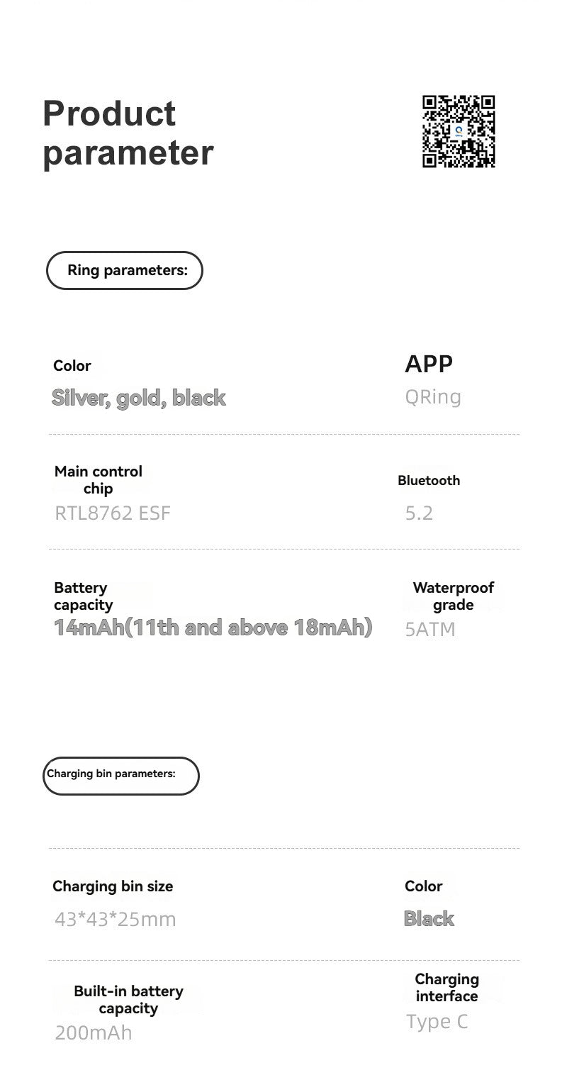 ارتقِ بتجربتك اليومية مع الخاتم الذكي الجديد ✨مظهر أنيق… أداء عالي… وكل المميزات اللي تحتاجها على طول يدك!مواصفات الخاتم: