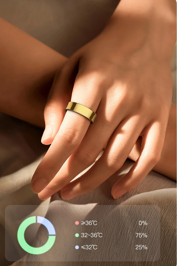 وخاتم نبضة يقيس حرارة جسمك تلقائيًا عبر التطبيق وينبهك بأي تغيّر مهم