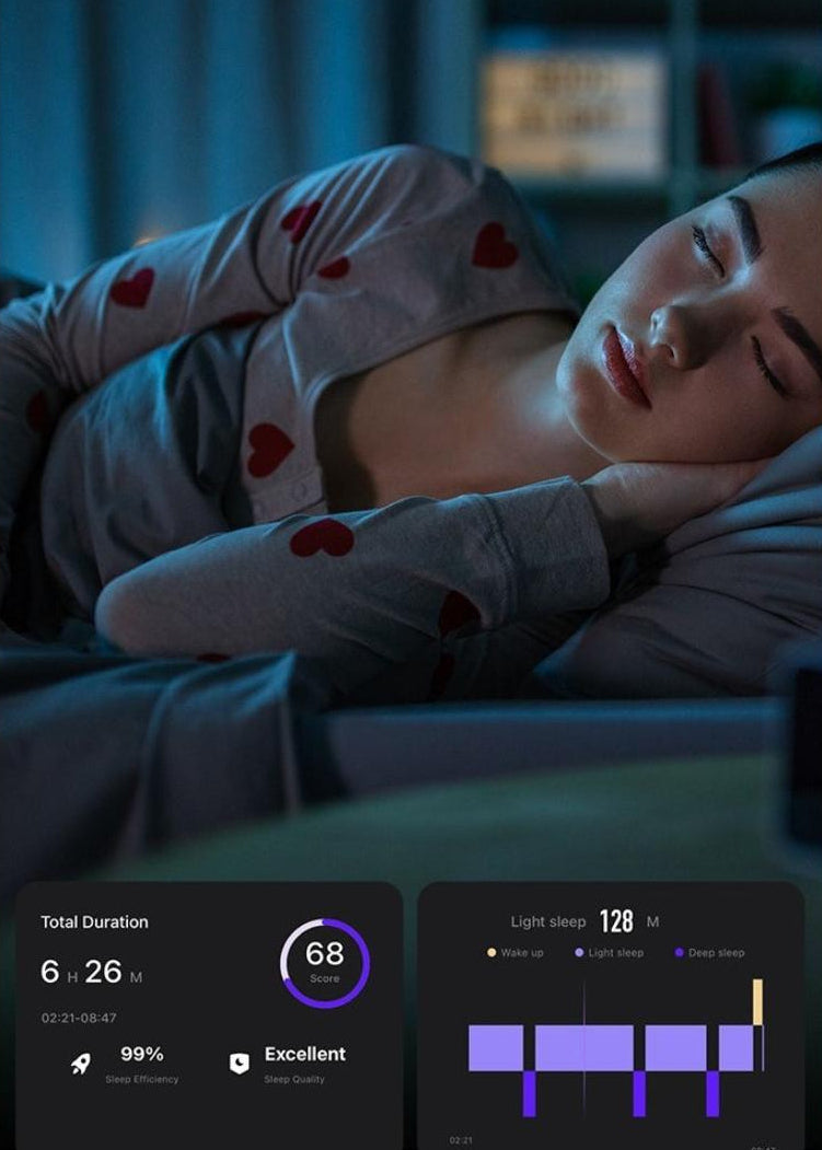 مراقبة نوم دقيقة دون أن تشعر الخاتم يتعقّب مراحل نومك تلقائيًا أثناء الليل، ويُصدر تقريرًا ذكيًا يساعدك على تحسين جودة نومك وبناء عادات صحية تضمن راحة أعمق كل يوم.